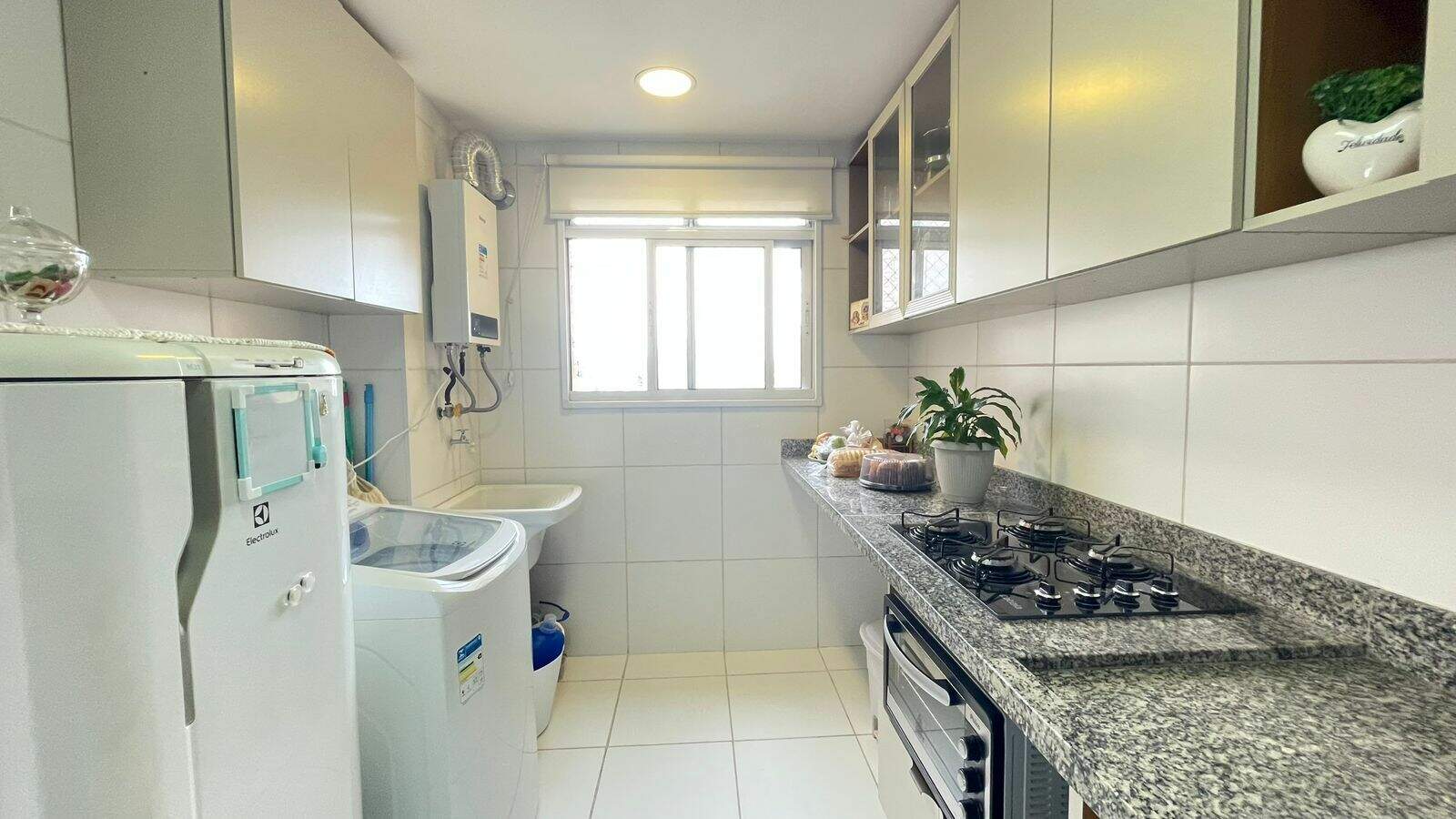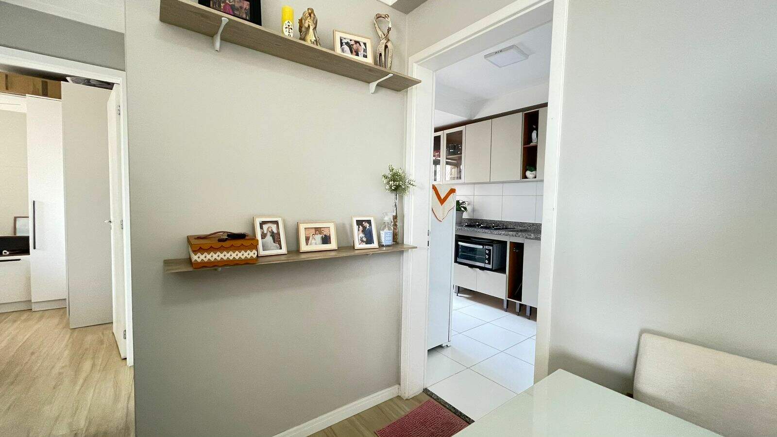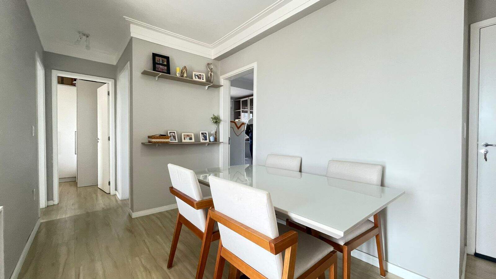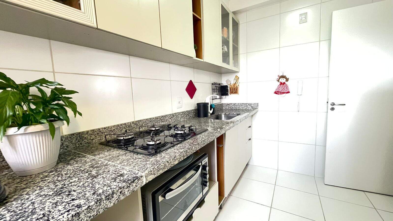 ]O imóvel dispõe de 02 dormitórios, 01 banheiro social, sala dois ambientes, sendo sala de estar com sacada e vista livre para sol da tarde, sala de jantar, cozinha planejada com cooktop, área de serviço, 01 vaga de garagem.