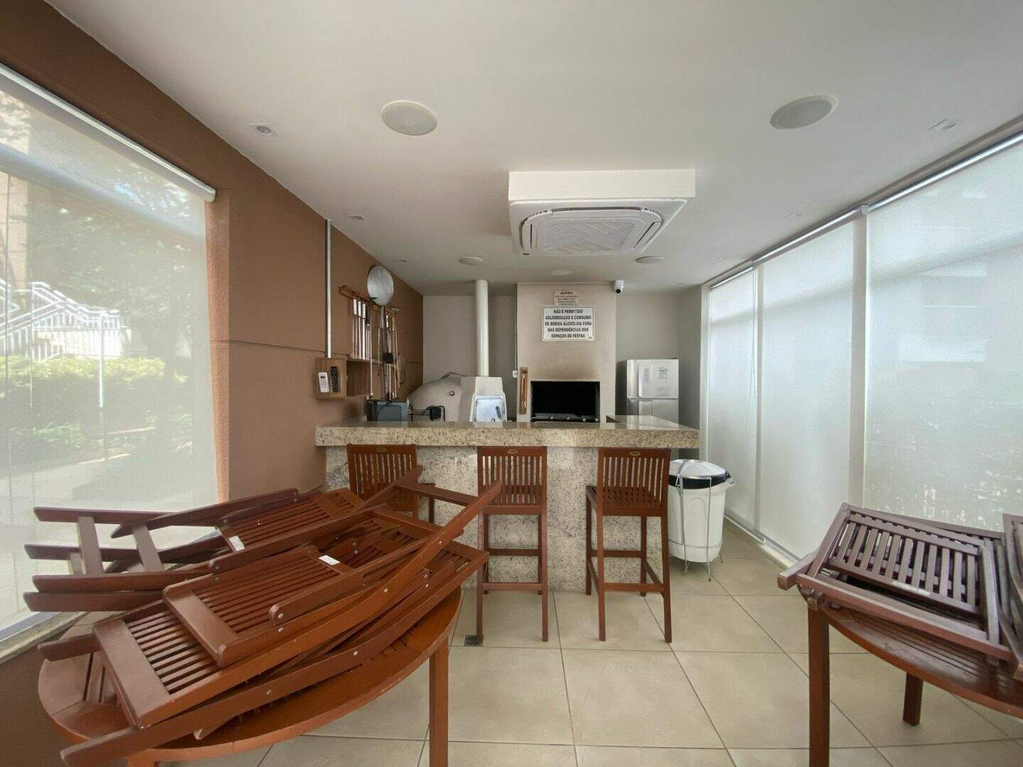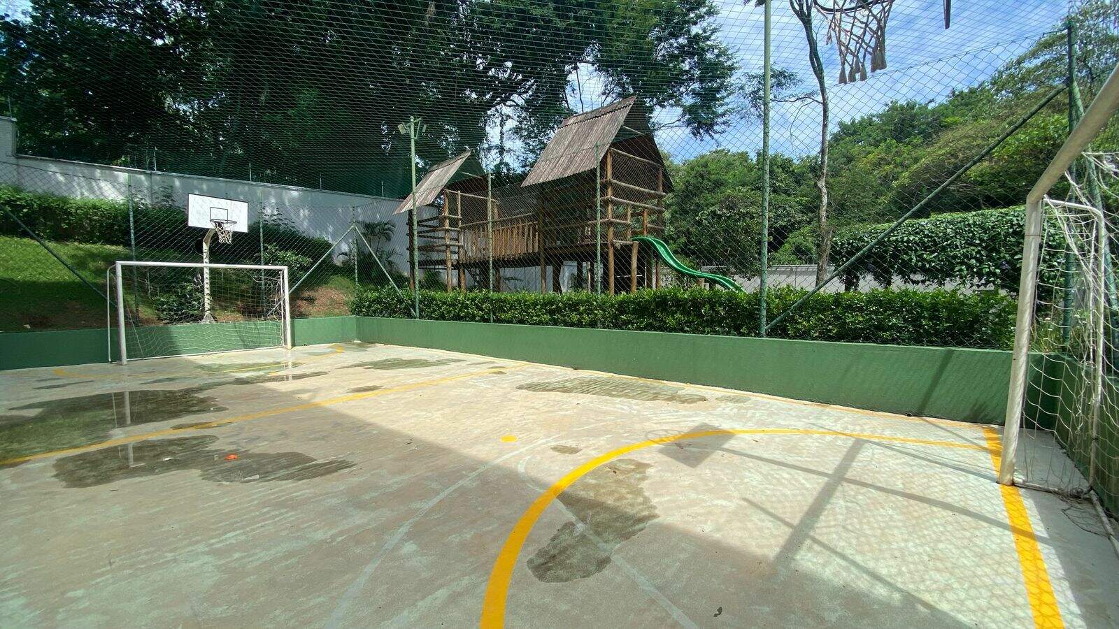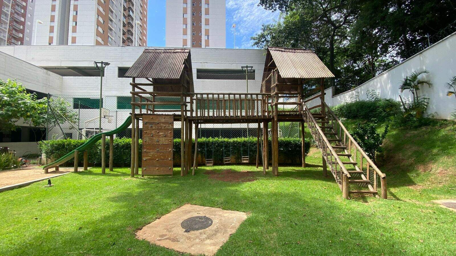 O condomínio conta com: Academia, churrasqueira, elevador, piscina aquecida, mercadinho, portaria 24h, quadra, salão de festas, brinquedoteca, playground.