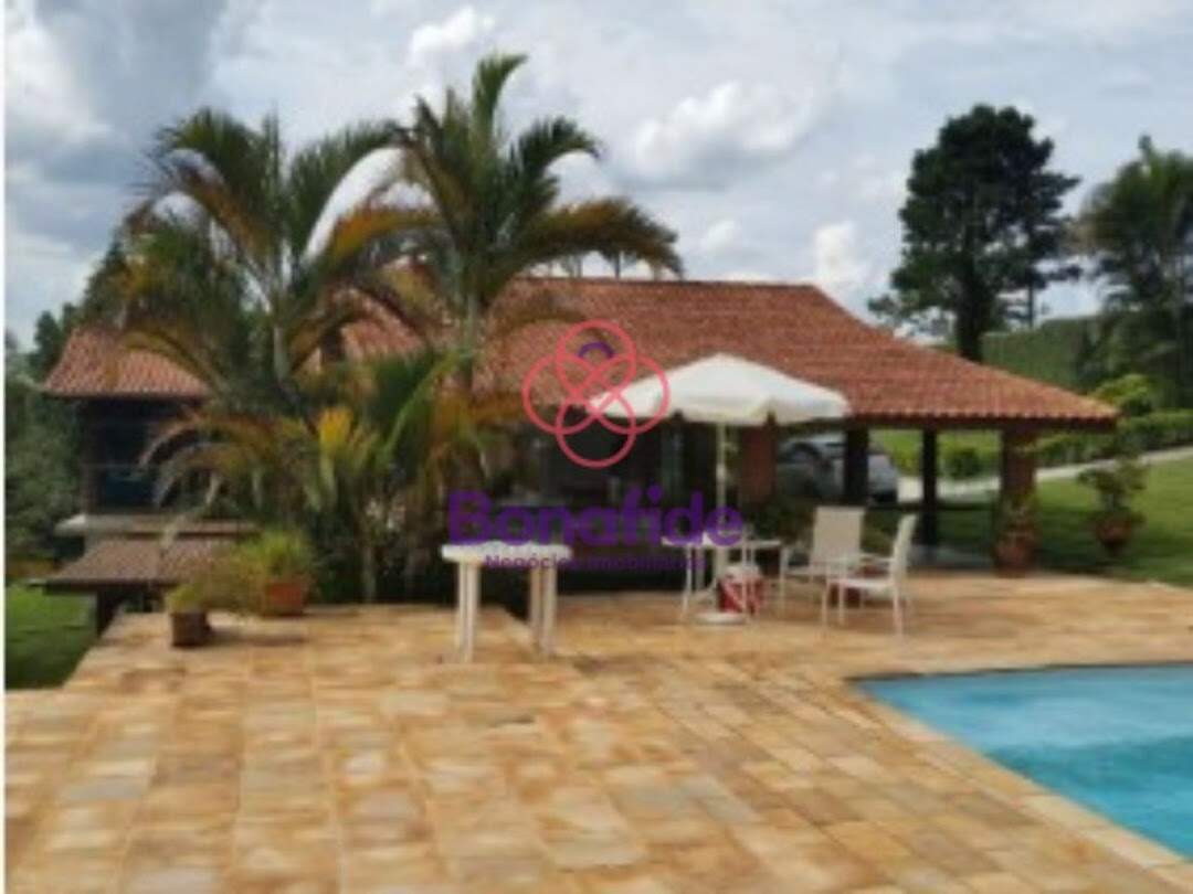 Chácara para VENDA localizada no bairro TERRAS DE SANTA CRUZ em Jundiaí/SP.Com 5.000 m² de terreno, toda gramada e com paisagismo, esta propriedade oferece conforto, lazer e excelente infraestrutura.Casa principal com 2 dormitórios, sendo 1 suíte, banheiro social, sala ampla com varanda, salão de inverno envidraçado com lareira, banheira de hidromassagem de 5.000 litros, deck e casa de máquinas.Salão social envidraçado, com deck, varanda, churrasqueira, forno em tijolo à vista, cozinha anexa, banheiro e despensa.Piscina de fibra com área de descanso em pedra mineira, vestiários com acabamento em granito e casa de máquinas acoplada.Área externa com espaço para festas todo gramado e edícula com churrasqueira e pias em granito.3 casas de hóspedes.Canil externo e coberto.A propriedade conta com portaria principal com portão basculante elétrico e acabamento fino em tijolo à vista. Possui abastecimento de água encanada da rua, além de 1 poço com bomba, que abastece uma caixa d'água de 10.000 litros e outras de 2.000 litros, distribuindo água para todas as áreas construídas.A Bonafide-Negócios Imobiliários atua há mais de 25 anos no mercado imobiliário de Jundiaí e região, garantindo um atendimento de qualidade e transparência. Entre em contato para mais informações e agende sua visita!